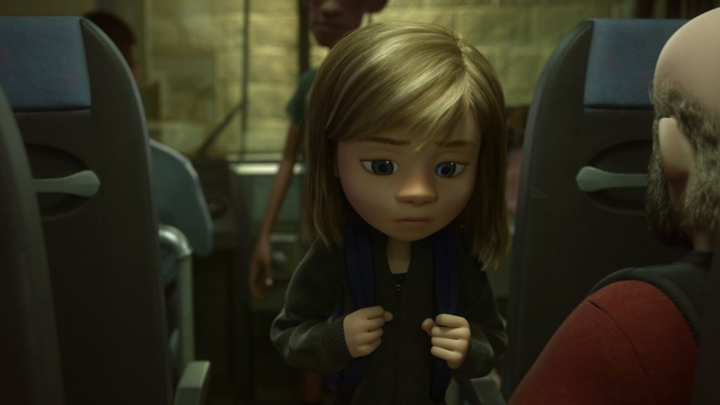 Debido a esta obligación autoimpuesta, Riley terminará por perder su alegría y su tristeza, llevándola a experimentar un desazón que irá afectando sus pensamientos centrales y en general cada uno de los pilares fundamentales en los que se ha basado su identidad. Finalmente, antes de que todo termine mal, con una protagonista en un estado de embotamiento huyendo de casa, recupera inesperadamente su impulso vital y gracias a esa tristeza de la que tanto quería huir, podrá expresarse y llorar abiertamente con sus padres, recibiendo su anhelado consuelo y confort.